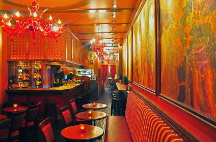 Welcome to Bobo’s, an elegant and stylish destination in the heart of the City, where you’ll discover the finest steak and crab delicacies. The restaurant’s exquisite ambiance, featuring antiqued red walls, colored glass light fixtures, and plush tablecloths, creates a luxurious setting reminiscent of a Venetian jewel box.