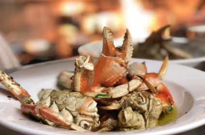 Indulge in the succulent Dungeness crab, harvested from the Pacific Ocean and roasted in a savory garlic-butter sauce that is sure to leave your taste buds craving for more.