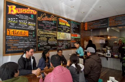 A spin-off of a popular food truck serving Indian fare with a twist, such as tikka masala burritos.