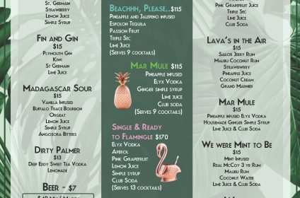 As you settle into this tropical oasis, you’ll find yourself spoilt for choice with an array of offerings at the full bar. Del Mar boasts infusion cocktails, slushies, punch bowls, and the legendary “The Kong” – a punch bowl that reigns supreme among all others. Whatever your preference, Del Mar promises something special for every guest who walks through its doors.