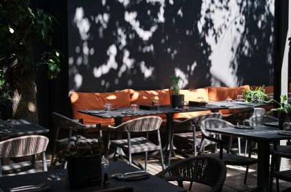 As you step into our space, you’ll be greeted by a combination of moody minimalist interiors and a vibrant courtyard cocktail bar. The ambiance is both welcoming and stylish, setting the stage for an unforgettable dining experience. Explore different dining hubs within our venue, from the sun-filled street-side area with comfortable leather banquettes to beautifully dressed tables adorned with slate tableware. Venture further into our plant-filled courtyard, where a corner sofa and a pizza oven create a relaxed and social atmosphere.