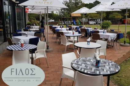 “Filos kitchen coffee bar deli is a Greek Authentic Restaurant based @ Hellenic Community of Pretoria. Fully licensed restaurant. Kiddies Area, Jungle gyms and Jumping castles… Catering for all functions and events. 0843666799 In**@******co.za Open Mon -Sat 8am – 9pm Sun 8am – 5pm”