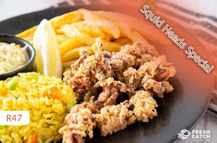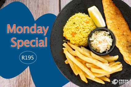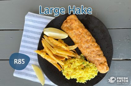 Indulge in the succulent flavors of our Large Hake, expertly prepared to perfection. Whether you’re a seafood connoisseur or just seeking a delectable meal, our dish is sure to delight your senses. Served with your choice of Chips, Rice, or a tantalizing combination of both, all for an incredible value of R85.