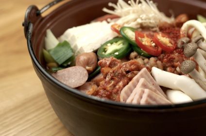 Bubbling hot pots grace most tables, offering a variety of enticing options from tofu and ramen to kimchi and baked beans. For a truly satisfying experience, try the bulgogi version, packed with flavorful ingredients such as cabbage, rice cakes, mushrooms, and bouncy japchae. Additionally, the soy-cured shrimp is a must-order, a delightful blend of sweet and salty flavors.