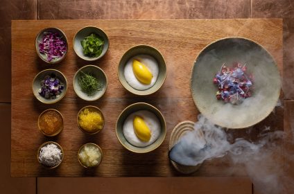 At Delaire Graff, Chef Virgil Kahn takes diners on a remarkable journey through Indo-Asian cuisine, presenting dishes that are not only delicious but also beautifully plated. Drawing from his extensive experience in the East, including his time at the Michelin-starred Saint Pierre in Singapore, Chef Kahn infuses his creations with the vibrant flavors of Asian herbs grown right on the estate. He also draws inspiration from cherished Cape Malay family recipes and the rich culinary traditions of North African and Middle Eastern cuisine.