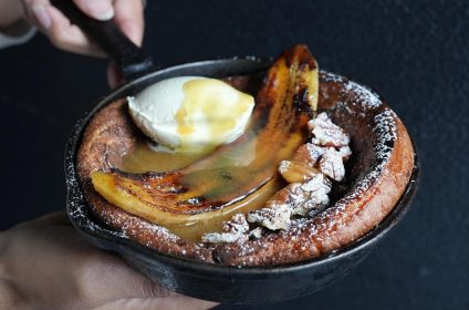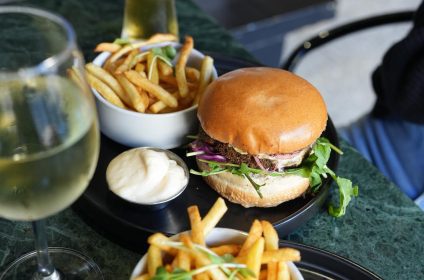 Indulge in our famous classic pancake stack, savor the tantalizing Turkish eggs, or explore the innovative twists on eggs benedict, such as the royale with salmon cream cheese roulade or the one featuring buttermilk fried chicken. As the day transitions, our dinner menu takes center stage, presenting timeless classics like fillet steak au poivre, mussels and frites, juicy burgers, and delectable chicken schnitzel. Complement your meal with one of our fabulous cocktails for the perfect finishing touch.