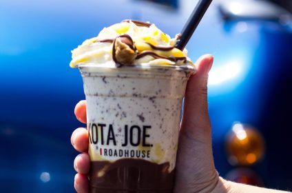 Kota Joe’s restaurants are impossible to miss, with larger-than-life menu billboards easily readable to anyone who pulls into the parking area. The specialty menu item is, of course, the kota – a hollowed-out loaf of bread (using Kota Joe’s special recipe) filled with savoury foods like beef, chips, polony, and cheese.