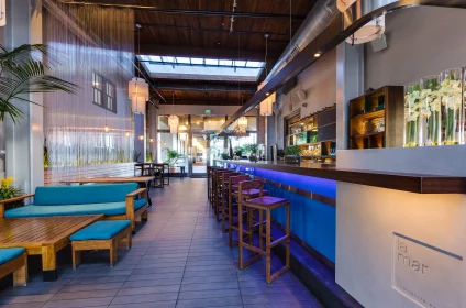 At La Mar, we bring the essence of Peru to the heart of San Francisco. Step into our elegant teal and blue-colored space, reminiscent of a chic hotel lobby nestled along Miami Beach. Indulge in the spirit of celebration as you venture onto our covered waterfront deck, offering mesmerizing views of piers and glistening waters – the perfect backdrop for sipping never-ending pisco sours and savoring our mouthwatering ceviche.