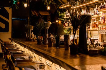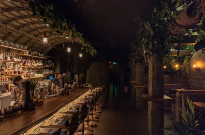 The Horsefeather crew crafts highbrow tiki drinks in this dark venue with lush plants & moody decor.
