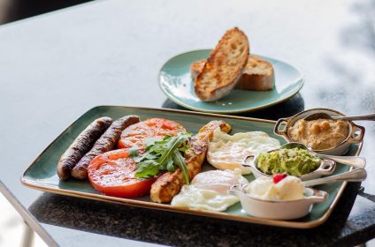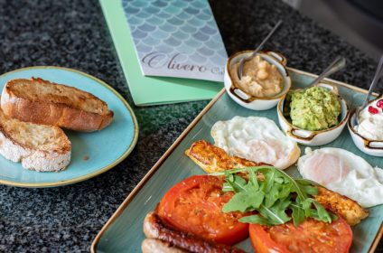 Rise and shine with a taste of the Mediterranean at Olivero Cafe! Our Mediterranean Breakfast is a symphony of flavors, featuring perfectly poached eggs, savory sausages, creamy halloumi, and three delightful dips on the side, all served with warm ciabatta bread. Start your day on a delicious note and savor the rich, authentic taste of the Mediterranean.