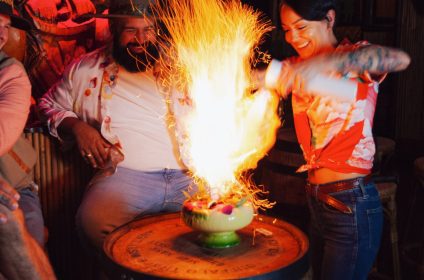 Pagan Idol is a Tiki bar located in the Financial District of San Francisco housed in a historical space that was once home to the infamous Tiki Bob’s Mainland Rendezvous. As you enter Pagan Idol you find yourself in the belly of a wooden ship that will transport you off the streets of San Francisco and deliver you to an exotic escape. Enter the back room at your own risk and encounter the sounds and sights of a tropical island, complete with starry night sky and erupting volcano. Come to Pagan Idol to suspend reality and experience unparalleled hospitality while enjoying an extensive menu of modern Tiki cocktails and an almost limitless selection of fine rums.