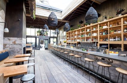 A light-drenched neighborhood bar with bi-level seating, basic snacks & tequila-centric cocktails.