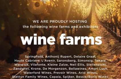We will host the following farms: Springfield, Anthonij Rupert, Delaire Graaf, Haute Cabriere, L’Avenir, Saronsberg, Simonsig, Tokara, Warwick, Vilafonte, Kleine Zalze, Neil Ellis, Stellenzicht, Zandvliet, Krone, De Morgenzon, Bellawines, Amari Lush, Waterford Wines, Prevoir Wines, Arid Wines, Stettyn Family Wines, Capaia, Spijker, Bessie/Boris Wines,