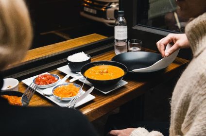 Step into our pared-back and modern space, adorned with subtle touches that pay homage to Seelan’s Kerala roots. With a seating capacity of 40 guests, you can choose to relax on our long booth against the wall or enjoy the lively atmosphere at our street-facing counter.