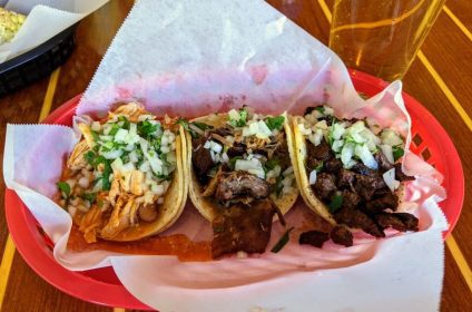 The chicken taco is a spicy delight, cooked in a flavorful mole sauce that dances on your taste buds. As for the carnitas and asada tacos, the meats are marinated in a citrus-infused blend, complemented by the richness of Mexican Coke. The trio is then topped with fresh cilantro, white onions, and a squeeze of lime, adding a refreshing twist to the savory indulgence.