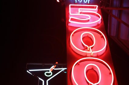As you approach, a neon marquee proudly marks the entrance, welcoming all who seek a genuine and unpretentious bar experience. The 500 Club has a unique charm that manages to attract both young hipster types and more seasoned adult patrons, creating a harmonious blend of clientele.