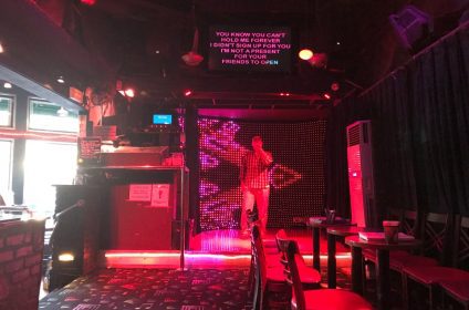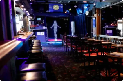 The Mint Karaoke Bar has a bar section and a stage seating section with a view of the live stage. You can see the stage from most angles of the bar as well as numerous tvs with both the songs and stage view playing. Karaoke is free, but tips are appreciated. Reservations will be placed in the seating section.