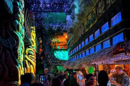 Thatched-roof booths & starry ceilings set the scene for rum & tiki drinks by the Future Bars team.https://www.facebook.com/thezombievillage/
